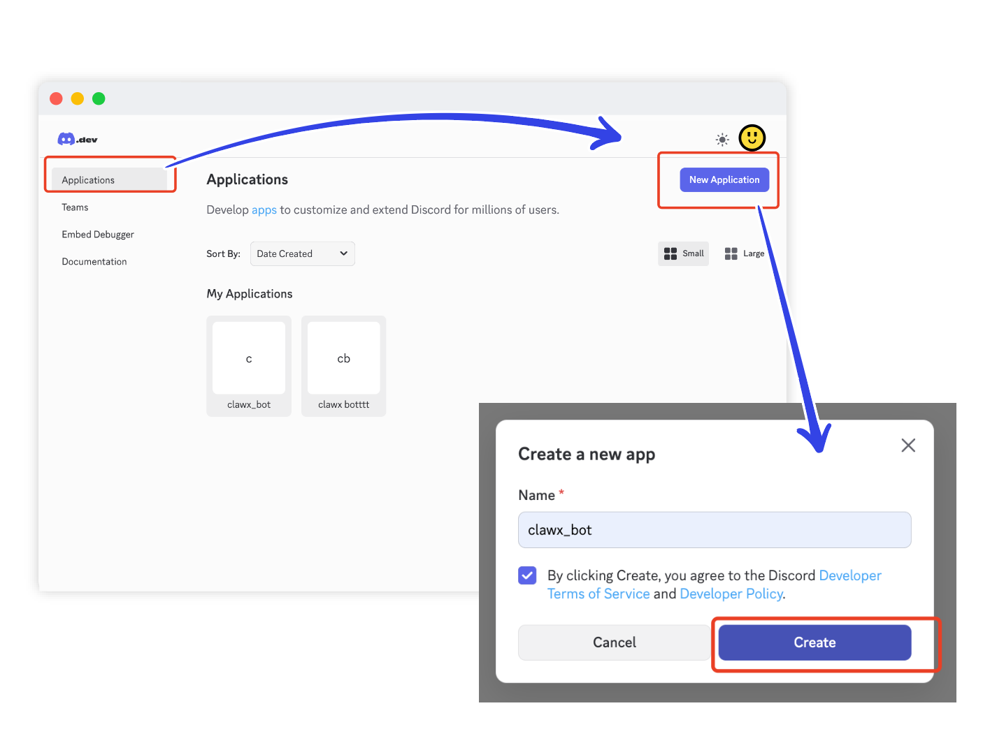 Go to Discord Developer Portal → Applications → Create New Application