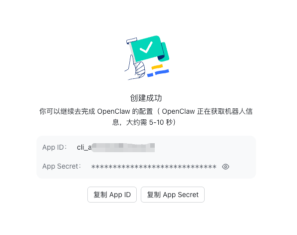 BAIclawHow to Add ChannelsFeishuOn this pageFeishuConfiguration StepsOpen the link One-Click Create RobotCopy the ID and Secret to BAIclaw's configuration page to complete the setupFor more information, refer to: OpenClaw Feishu Official Plugin Usage Guide (Public Version)
