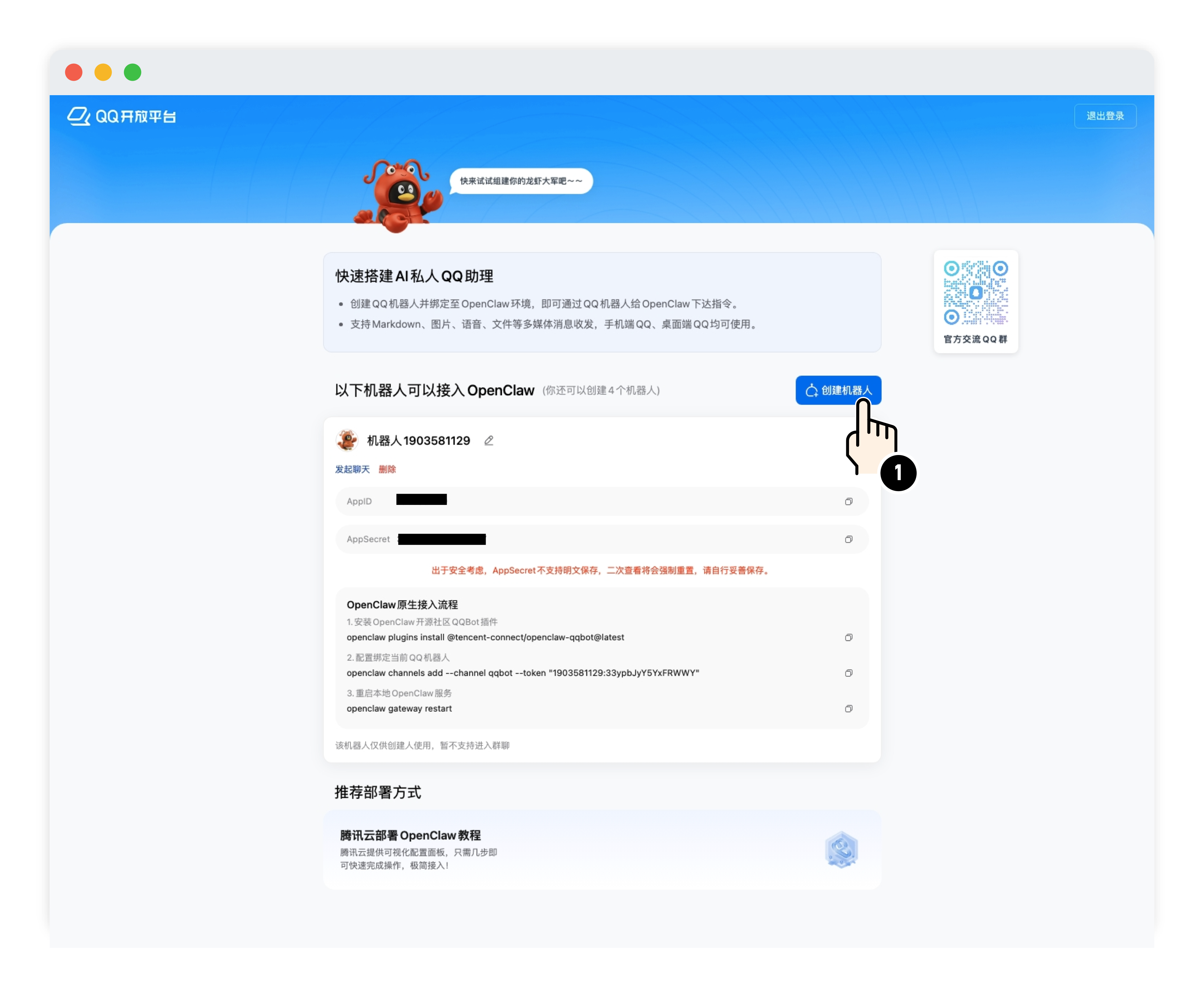 - Go to Quick Registration Create QQ Robot