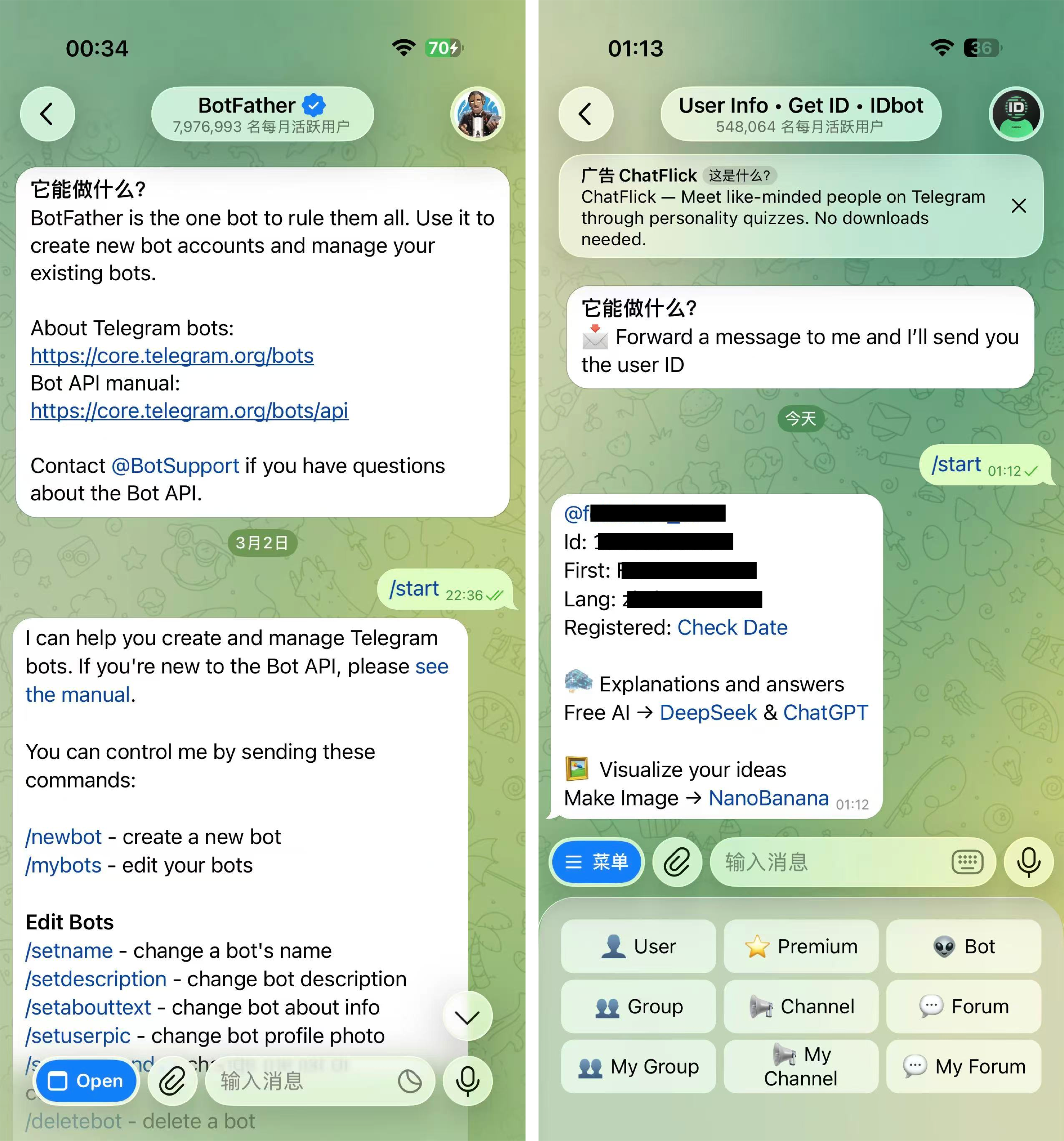 - Open Telegram, search for and open @BotFather (with verification badge)